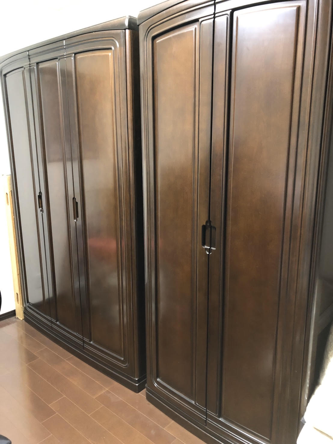 最近では簡単な組み立て家具も増えてきていることもあり、あまりこのような婚礼家具は需要が少ないかと思います。部屋を広く使いたいことから処分を考えられたとお話頂きました。