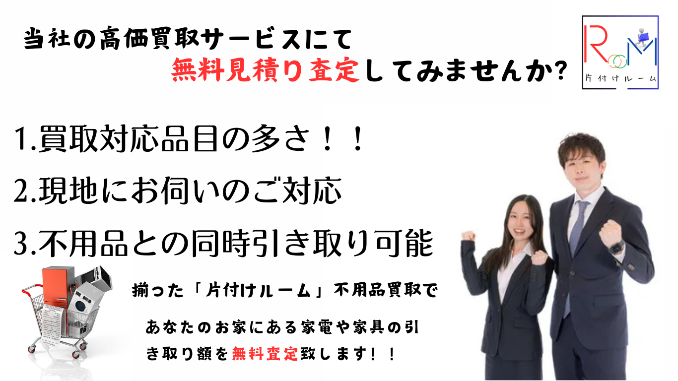 お引越しや家の売却時の家財道具一式買取や1点の単品買取までご対応可能です。また買取対応の幅が広い事も当社の強みです。大型家具・家電や食器類・骨董品や貴金属も片付けルームにおまかせください。まずはお電話でご相談ください。